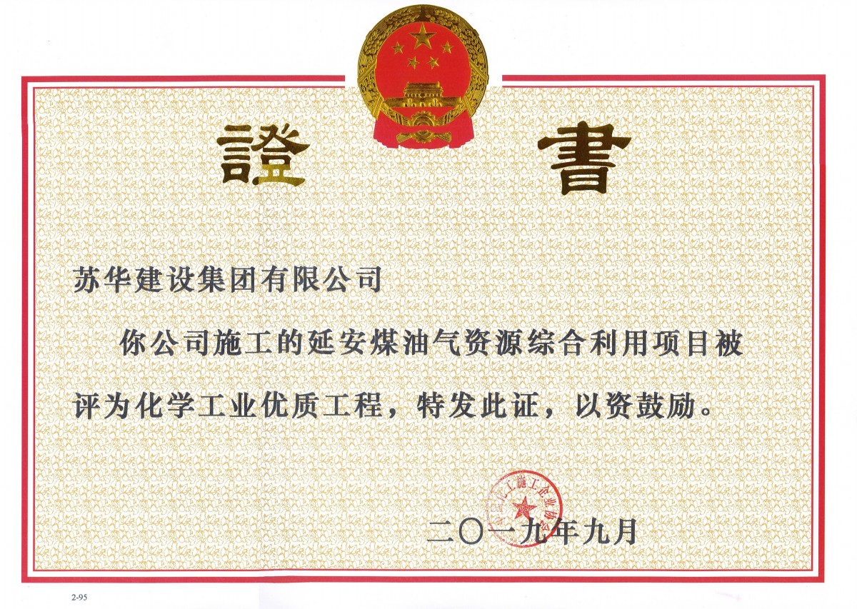 最近,我公司又获得了由中国化工施工企业协会颁发的全国化学工业优质工程奖状。陕西延长石油延安能源化工有限责任公司建设的延安煤油气资源综合利用项目热动力站项目。由我苏华建设集团有限公司上海分公司承建。该项...